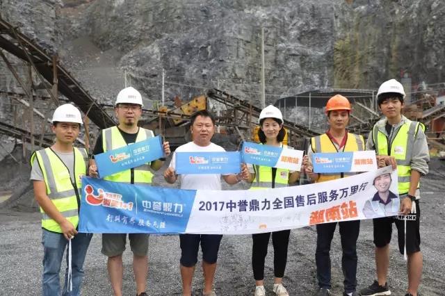 制砂生產線于2016年5月開始建設,采用了中譽鼎力的制砂樓設備。生產線負責人吳旭根據制砂設備運行一年的情況,結合自身多年的制砂生產經驗,對中譽鼎力的制砂樓設計提出了的改進建議,例如,湖南地區雨水較多,制砂樓的提升機位置是否可以更高;制砂樓內部的粉塵粉末是否可以考慮采用罐裝,這樣更方便運輸,等等。中譽鼎力服務萬里行團隊認真聽取記錄改進建議,并表示將及時把這些好的建議反饋給公司設備研發部,以便對設備進行更符合客戶需求的改進。