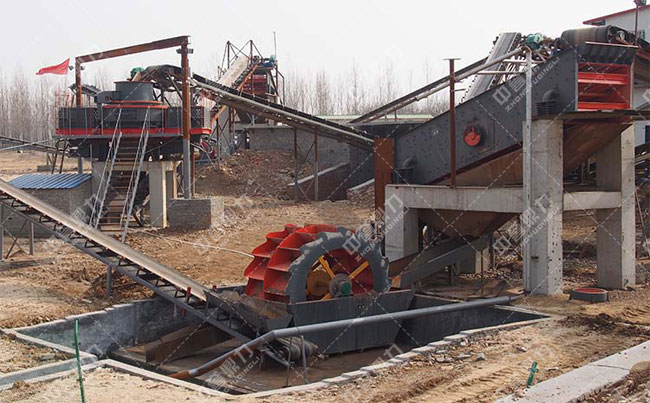 這條300噸的水洗砂生產線,是將破碎后的碎石料經過ZSJ1416雙轉子制砂機進行...