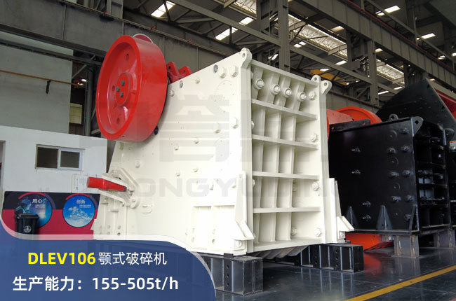 DLEV106鄂式破碎機(jī)允許的進(jìn)料大小為600mm以?xún)?nèi),進(jìn)料口尺寸在1060×700mm,配備電機(jī)功率為110kw,生產(chǎn)能力可達(dá)500t/h。