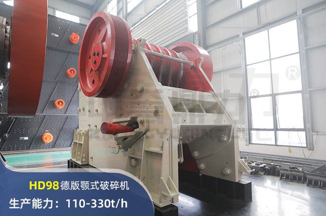 HD98(751)顎式破碎機進料口尺寸680×980mm,進料粒度630mm,出料大小75-175mm。電機功率8p 110kw,時產可達330噸。