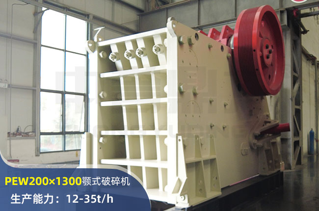 PEW200×1300顎式破碎機進料口尺寸200×1300mm,進料粒度180mm左右,出料大小10-30mm,電機功率30-37kw,時產量在12-35噸左右,屬于小型鄂破。