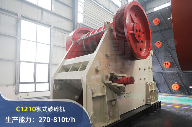 C1210顎式破碎機進料粒度在1050mm,出料粒度可達75mm,時產(chǎn)量在270-810噸左右,電機用的是132kw的,屬于中小型鄂破設(shè)備,其構(gòu)造簡要,工作靠譜,整體結(jié)構(gòu),操作以及維護都很方便。