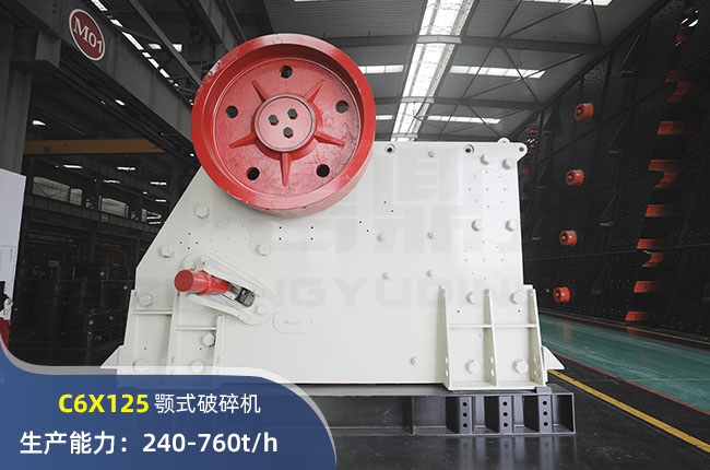 C6X125顎式破碎機(jī)進(jìn)料口尺寸950×1250mm,進(jìn)料粒度≤950mm,出料大小≤100mm,時(shí)產(chǎn)在240-760噸左右。