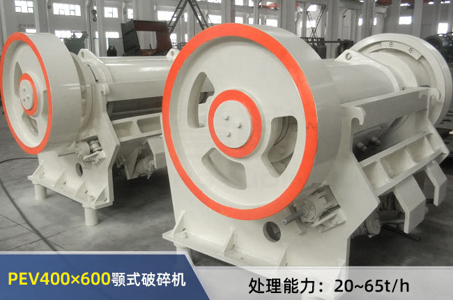 PEV400×600顎式破碎機(jī)時產(chǎn)20-95噸,電機(jī)功率為30或37千瓦,進(jìn)料粒度要求<340mm,出料范圍40-80mm,重量是7噸,外形長2500mm,寬1750mm,高1950mm。