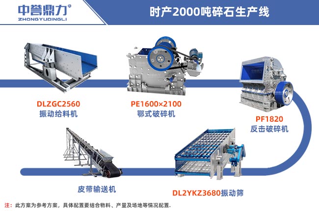 日產(chǎn)2萬噸石子生產(chǎn)線即時產(chǎn)2000噸石子生產(chǎn)線,一天工作10小時,具體配置可以用DLZGC2560振動給料機(jī)、PE1600×2100顎式破碎機(jī)、PF1820反擊式破碎機(jī)、DL2YKZ3680振動篩、輸送機(jī)等設(shè)備。本金充足條件許可的話,還可以搭配脈沖袋式除塵器減少粉塵污染,還有生產(chǎn)管理系統(tǒng)、自動裝車系統(tǒng)等智能化生產(chǎn)線軟件。配置清單如下: