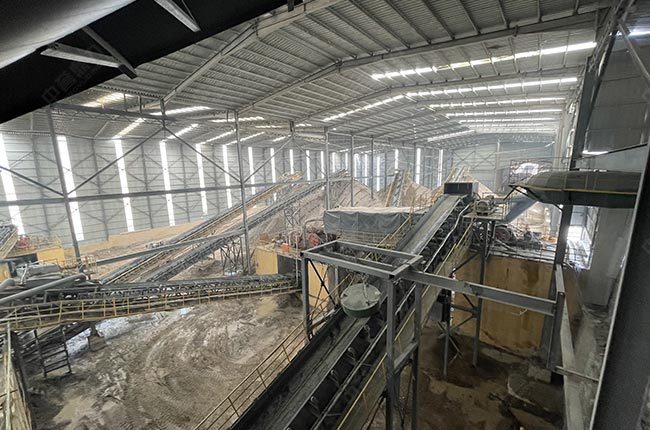 設備配置:ZSW490*110振動給料機、PE800*1060顎式破碎機、HST160圓錐破、JYT5120制砂機2臺、3YK2460振動篩2臺。