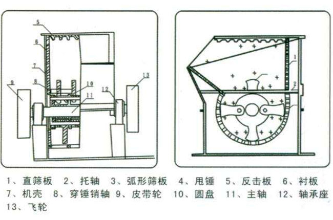 方箱破碎機(jī)的機(jī)架是三分體結(jié)構(gòu),主要打開后背機(jī)殼,就可以進(jìn)行更換托軸、反擊板及襯板等檢修維護(hù)工作。