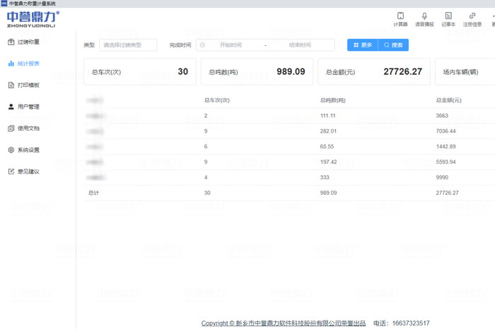3、統(tǒng)計報表,統(tǒng)計稱重數(shù)據(jù)、車次、可計算金額;