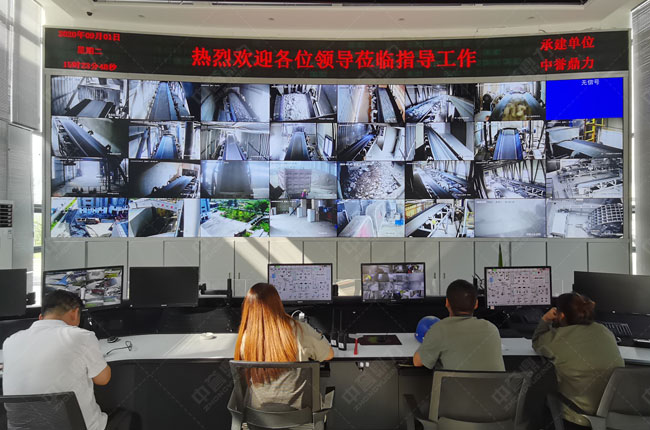 我公司礦山砂石生產線視頻監控系統采用360度高清攝像頭+30倍光學變焦+互聯網,通過中控大屏實時遠程監視整條砂石生產線的運轉情況。