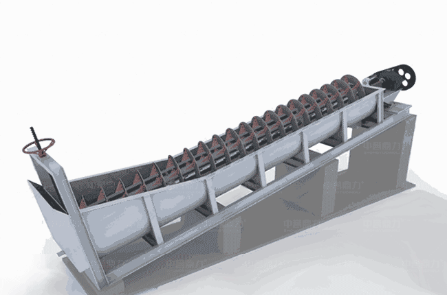 螺旋洗砂機工作原理是電機經減速機驅動螺旋旋轉,通過水介質讓細沙浮游或溢出,沉淀池底部多孔板給入清洗水,粗砂會沉于槽底,螺旋逐步將粗砂推向出料口,從頂端出料口排出,繼而實現砂子的清洗、脫水、篩選等效果。