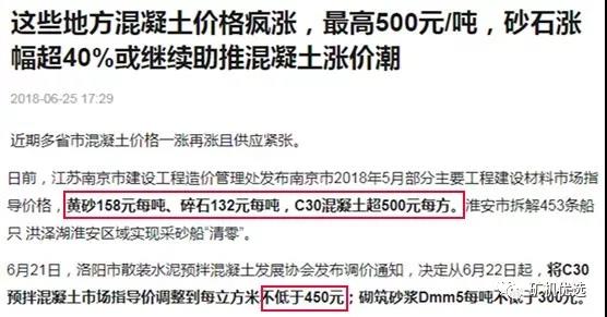 據不完統計,砂石骨料、混凝土、水泥等自2017年1月到本月中旬,砂子價格高漲達到600%以上,石子漲達114.29%以上,砂石料價格持續上漲;同期混凝土漲幅在27-31%之間,水泥價格漲幅在32-37%之間。