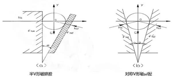 V形腔結(jié)構(gòu)使實際進(jìn)料口寬度與名義進(jìn)料口寬度相一致,并且更容易排料,相對來說不易發(fā)生堵料現(xiàn)象,不易蹦料,更深的破碎腔,無死區(qū),破碎效率更高。