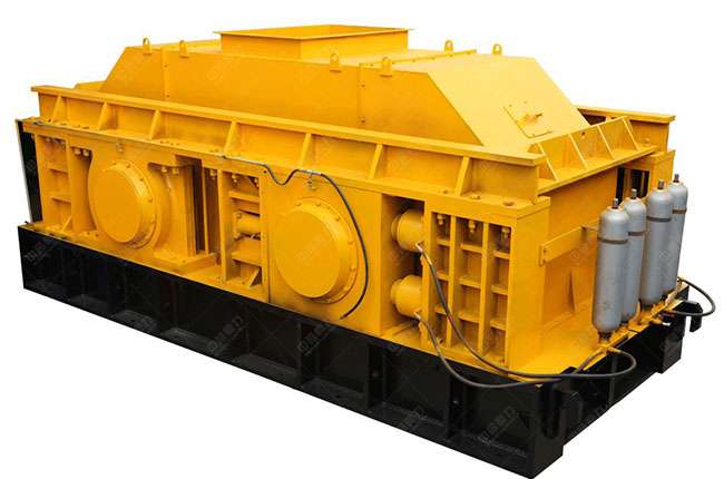 雙輥式破碎機主要由不變和活動加工輥、壓緊和控制系統和帶動系統等部分構成, 作業時,石子從給料口進入機體內,經過圓柱形的兩輥對石子擠壓沖擊、揉搓、研磨加工的影響,使石子得以被加工,碎后的成品從底架下面排出。
