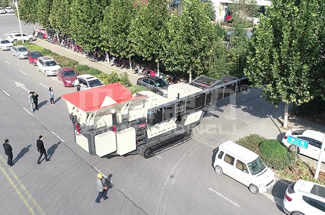 輪胎式移動(dòng)碎石機(jī)適合在平坦的道路上行走,需要半掛車頭進(jìn)行牽引移動(dòng)轉(zhuǎn)場(chǎng),需要簡(jiǎn)單的整理平整地面就可進(jìn)行碎石作業(yè)。