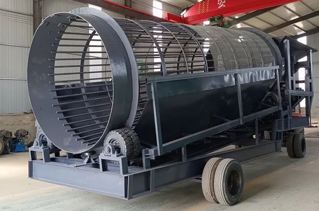 移動滾筒篩石機具有處理能力大,篩網更換簡便,不堵塞,投資少、用工少,機動靈活等特點。