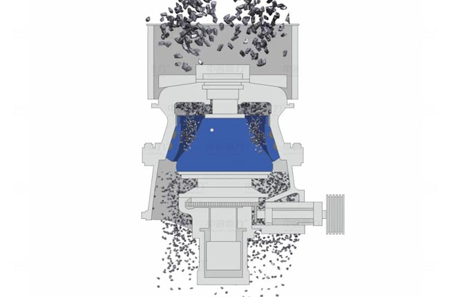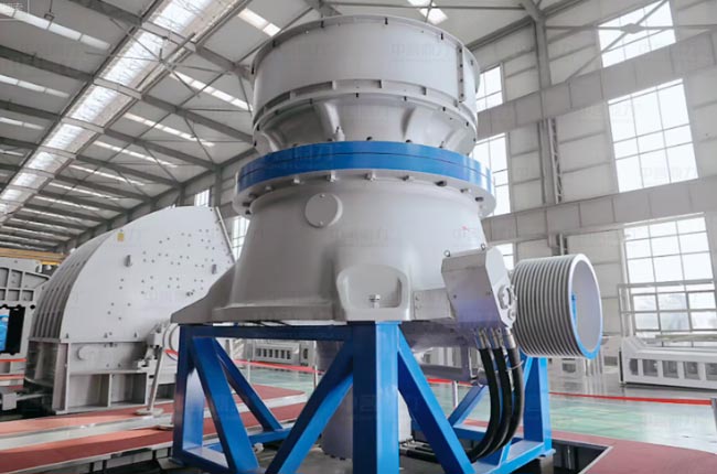 出料大小是由動錐上下運動控制,由動錐底部的液壓缸控制調節,方便快捷,還具備過鐵保護,自動恢復功能,延長設備使用壽命,較大程度停機次數。