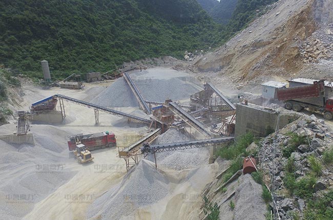 頭破采用錘式破碎機,破碎石料直接通過篩機篩分出部分成品料