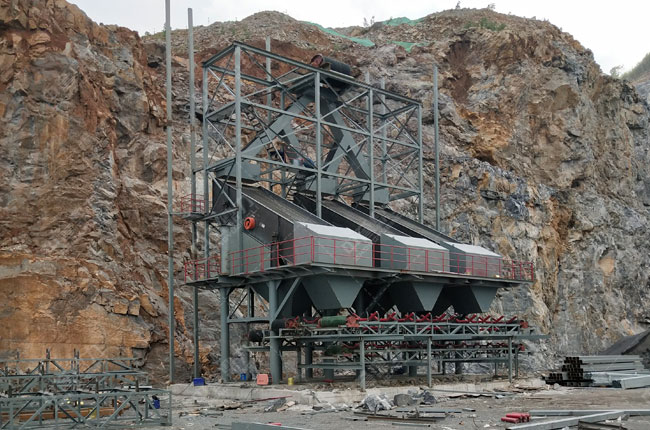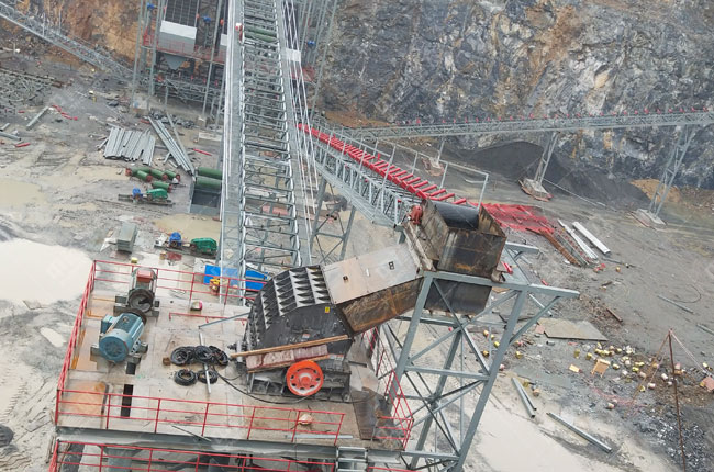 億達(dá)建材石料有限公司新建的這條日產(chǎn)10000噸的石料生產(chǎn)線(時(shí)產(chǎn)量在1000噸),采用重型錘式破碎機(jī)+整形破+配套設(shè)備,石料裝車采用封閉的地龍皮帶自動(dòng)裝車系統(tǒng)。