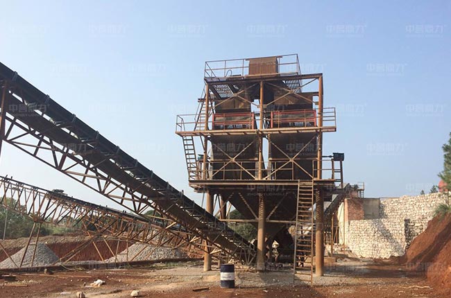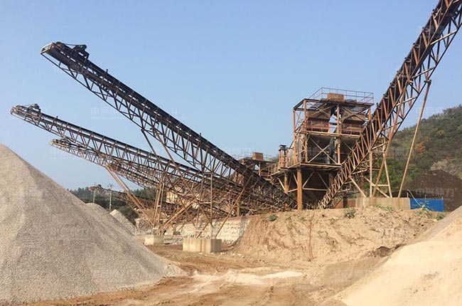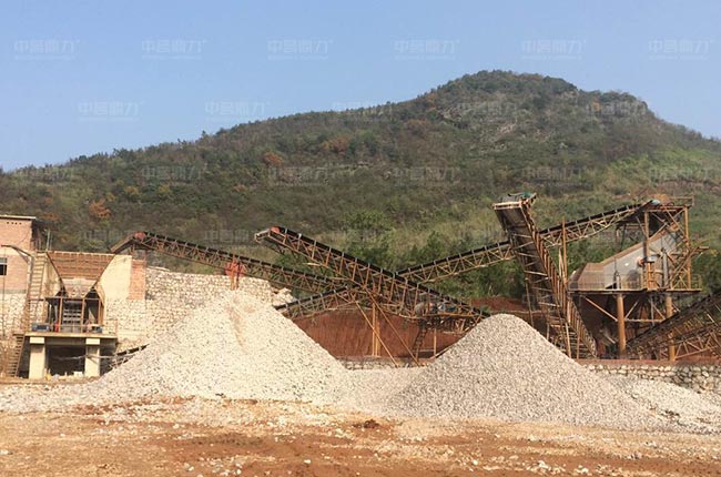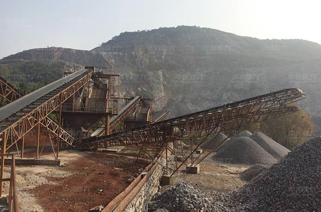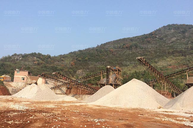 主要生產(chǎn)混凝土建筑用骨料,原料是石灰石、生產(chǎn)石粉、米石、5-10、10-20等規(guī)格的石料,選用一臺(tái)1615重錘破碎機(jī)和4臺(tái)YKZ振動(dòng)篩,不需要二級(jí)破碎設(shè)備投資。