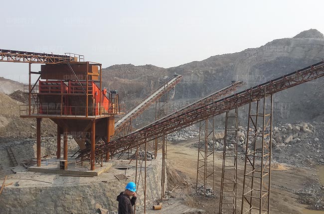江西九江這條時產600-700噸砂石破碎生產線,2016年4月投產,采用一次成型,無需二次破碎的1615重錘破碎機,生產線投資成本較小,生產的骨料品質好、銷量高。