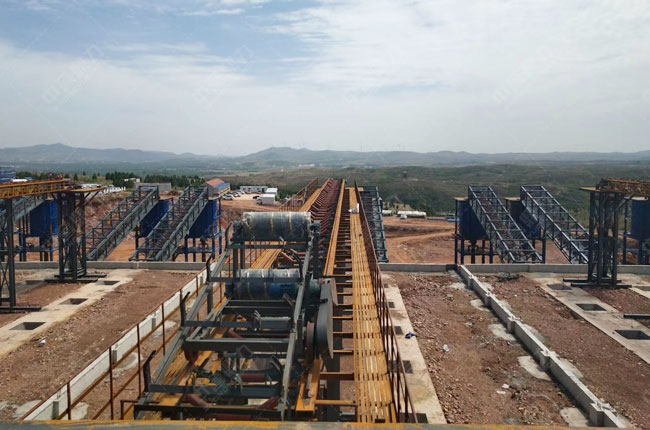 整個(gè)加工流程是:石灰石由除土篩預(yù)先除土篩分,得到清潔度較高的石灰石再由1820破碎機(jī)進(jìn)行破碎,4臺(tái)并排安裝的3070振動(dòng)篩進(jìn)行篩選,再由1220整形錘破進(jìn)行二次整形破碎,4臺(tái)并排安裝的3070振動(dòng)篩進(jìn)行篩選。