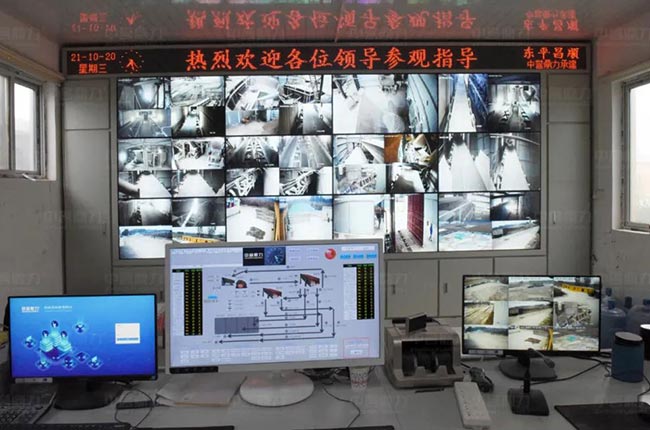 控制中心監控大屏,顯示器為鼎力礦山管理系統操控界面