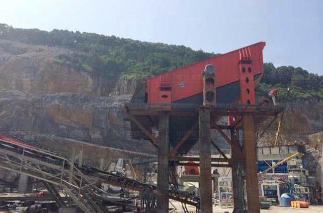該時產(chǎn)1000噸混凝土骨料生產(chǎn)線主要設(shè)備有:ZGC2050給料機、PCZ1620重錘破、PC1220整形破、YKZ振動篩等骨料加工設(shè)備