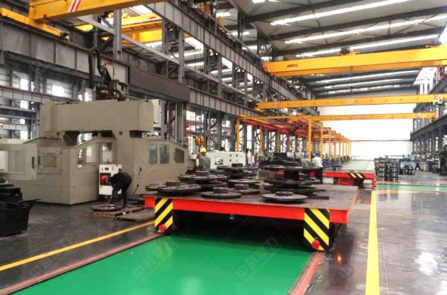 用于各個(gè)工位間的產(chǎn)品轉(zhuǎn)運(yùn),具有自動(dòng)行走、自動(dòng)移載功能;采用滑觸線取電,與工位臺(tái)之間采用掃描二位碼定位;與工位臺(tái)之間采用以太網(wǎng)無(wú)線通訊;主線方向上行走采用變頻調(diào)速,速度范圍0-40m/分鐘;橫向移載采用定速輸送產(chǎn)品,速度12m/分鐘;