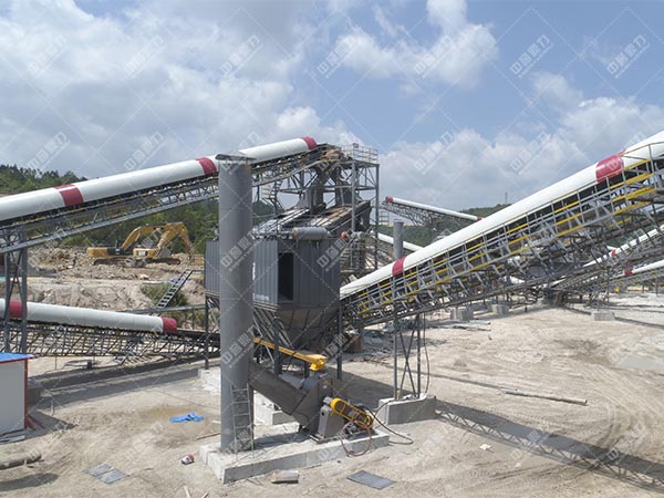 先,石頭由送料機均勻地送進粗碎機進行破碎,然后,產成的粗骨料由皮帶運輸機運輸至反擊礦山碎石機進行深度破碎,整型破碎后的石頭進振動篩篩選分級出不同性能的石子,不粒度合格的石子返料進反擊礦山碎石機又一次破碎,毛料經料堆由振動送料機均勻地送進pe鄂破機進行粗碎,粗碎后的石頭由皮帶運輸機送入反擊礦山碎石機進行深度破碎;整型破碎后的石頭由皮帶運輸機送進振動篩進行篩選分級,篩選分級出多種不同性能的石子,粒度合格的石子由成品皮帶運輸機送往成品骨料堆;不粒度合格的石子由皮帶運輸機返料送入反擊礦山碎石機進行又一次破碎,形成閉路多次循環,成品粒度可根據用戶的需要進行組合和分級,為保護環境,可搭配輔助的除塵機械。