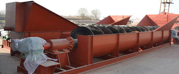 先螺旋洗砂機工作時,電機通過V型皮帶、減速機、齒輪減速后驅使葉輪緩慢操作,海砂由送料槽進入洗槽中,然后在葉輪的驅使下翻滾,并互相粉碎,除去覆蓋在海砂外觀上的臟東西,此時傷害包覆砂粒的水汽層,以利于脫水;然后此時加水,形成強大的水流,立即將臟東西及比重小的異物帶走,并從溢出口洗槽排出,完成清洗影響,除氯后的海砂由葉片帶走,后從操作的葉輪倒入出料槽,完成整個海砂淡化中的洗砂過程。