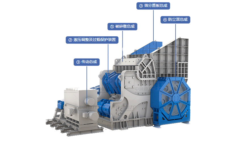 ⑤破碎壁總成 破碎壁總成分上破碎機總成及下破碎機總成
