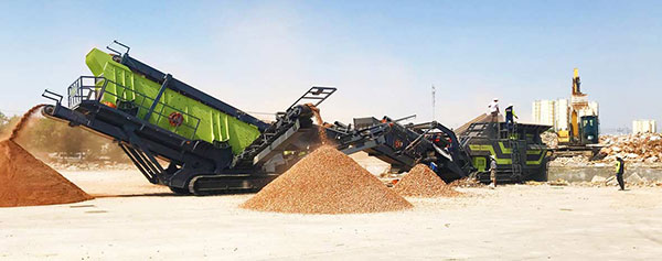 由于時代快速發展,客戶對礦山裝備的要求不僅僅停留在破碎成效,加工能力上了, 生產過程方便,快速,無需人工化也同等重要,而車載式碎石機可符合客戶的部生產需要,在原有不變式碎石機的基礎上,添加移動系統,車頭牽著就可跑,可快速移動到工作使用環境,不用打樁安裝,方便省錢,此時擴展了其使用范圍,不包含石頭,還可對各類巖石、廢棄混凝土、空心磚等進行工作,適應能力強。