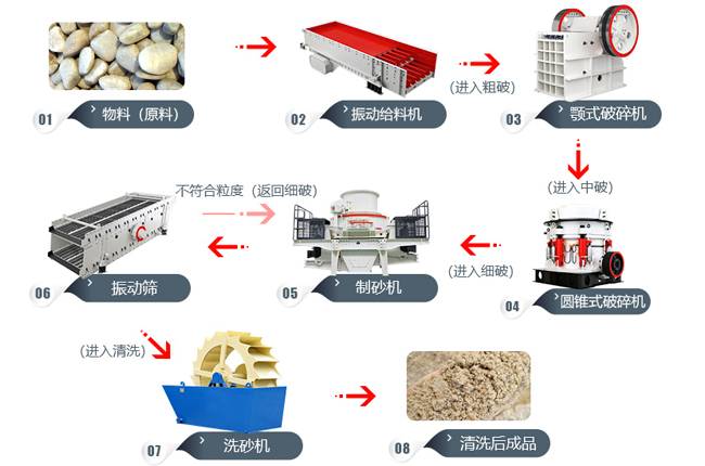 搭配機(jī)械:PE750*1060顎破、GYS400圓錐碎石機(jī)、VSI1140制砂機(jī)械、4YK2460篩機(jī)分機(jī)、3020洗石機(jī)