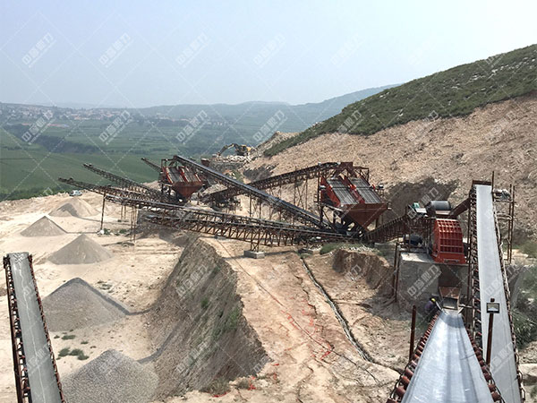 根據客戶需求及公司技術指導,為客戶了兩段破碎,前段采用顎式破碎機進行細碎,加工成后進入中轉料倉,為雙轉子制砂機提供原料,經沖擊破生產出粒型、級配合理的成品砂,用于該集團公司的混凝土攪拌站。