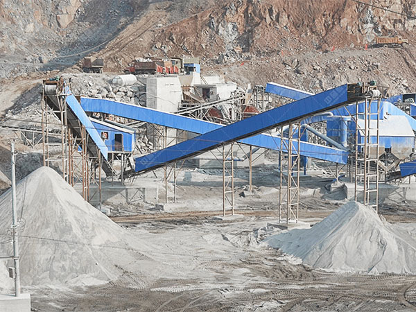 送入洗沙機的巖石經由洗沙機清洗后,做為終機械的一部分,由傳送機械輸送至儲料堆,